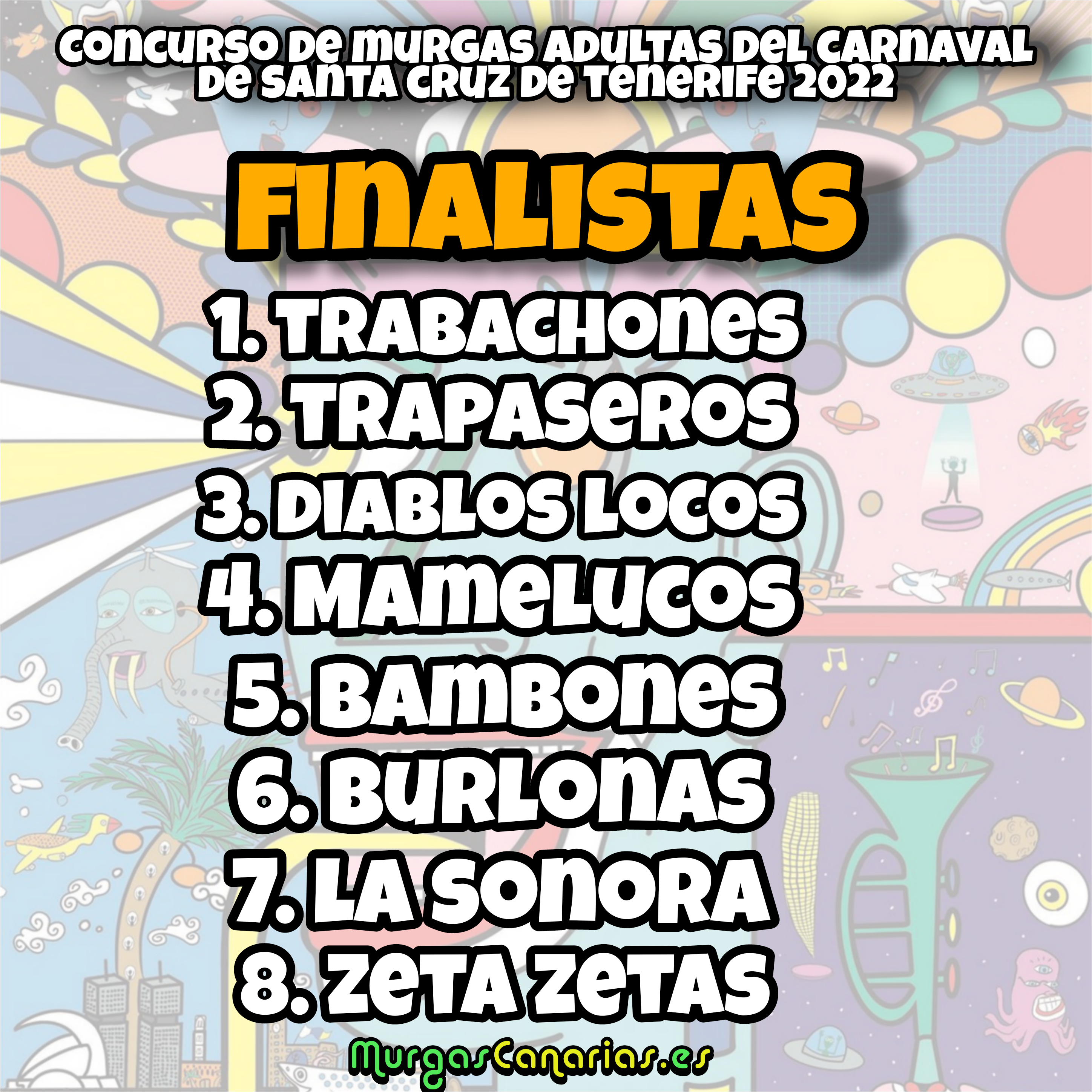 Carnaval Tenerife Estos son los finalistas del Concurso de Murgas de Santa Cruz de Tenerife 2022 Murgas Canarias 16 junio, 2022 Haz Click para comentar Deja tu comentario Cancelar la respuestaTu dirección de correo electrónico no será publicada. Los campos obligatorios están marcados con *Comentario * Nombre * Correo electrónico * Web Guarda mi nombre, correo electrónico y web en este navegador para la próxima vez que comente. − = Carnaval Tenerife 16 junio, 2022 Artículos relacionados