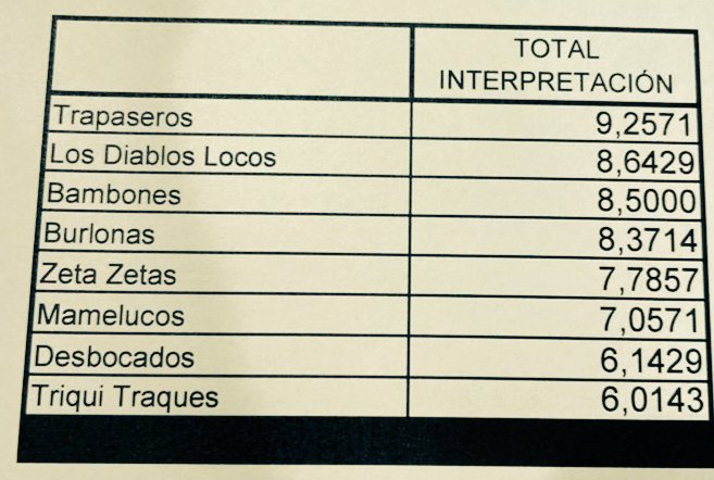 Carnaval Tenerife Puntuaciones del Concurso de Murgas Adultas de Santa Cruz de Tenerife 2023 Murgas Canarias 4 febrero, 2023 FINAL Haz Click para comentar Deja tu comentario Cancelar la respuestaTu dirección de correo electrónico no será publicada. Los campos obligatorios están marcados con *Comentario * Nombre * Correo electrónico * Web Guarda mi nombre, correo electrónico y web en este navegador para la próxima vez que comente. 8 × dos = Carnaval Tenerife 4 febrero, 2023 Artículos relacionados
