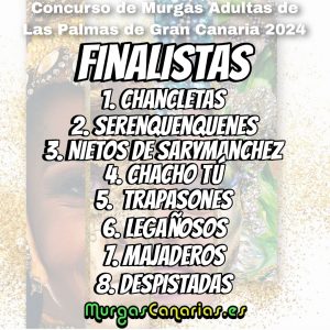 Carnaval Gran Canaria Finalistas del Concurso de Murgas Adultas de Las Palmas de Gran Canaria 2024 Murgas Canarias 1 febrero, 2024 Haz Click para comentar Deja tu comentario Cancelar la respuestaTu dirección de correo electrónico no será publicada. Los campos obligatorios están marcados con *Comentario * Nombre * Correo electrónico * Web Guarda mi nombre, correo electrónico y web en este navegador para la próxima vez que comente. × 4 = dieciséis Carnaval Gran Canaria 1 febrero, 2024 Artículos relacionados