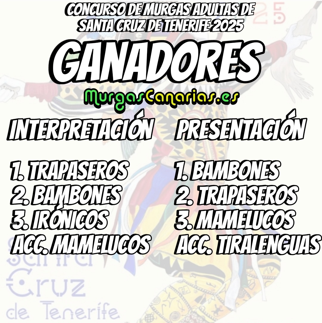 Estas son las murgas ganadoras del Concurso de Murgas Adultas de Santa Cruz de Tenerife 2025