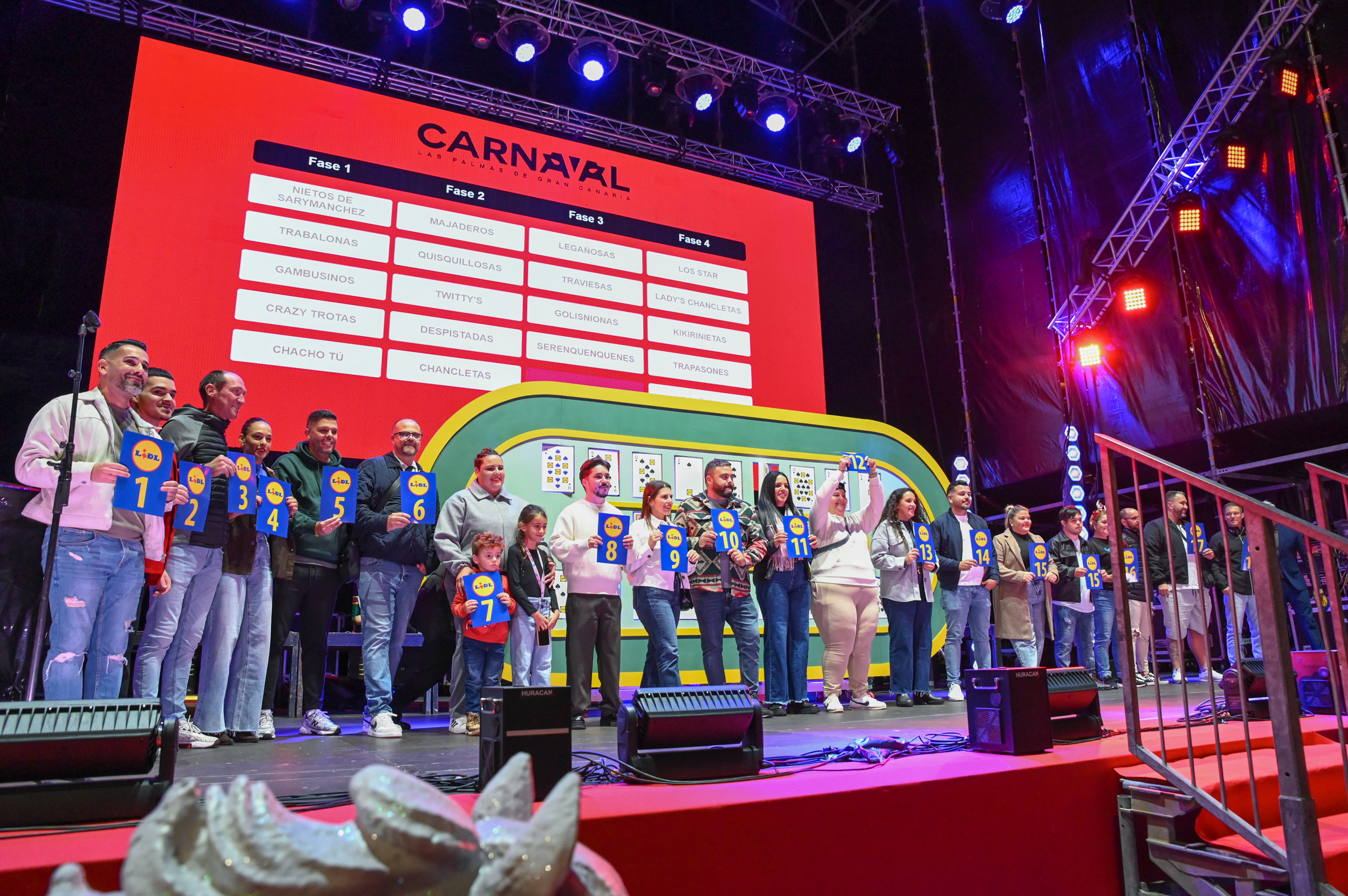 El orden de actuación fue determinado en el sorteo celebrado este sábado 20 de diciembre en el parque Santa Catalina, acto que estuvo conducido por el presentador de televisión Daniel Calero y que contó con la presencia de la alcaldesa, Carolina Darias, y del concejal de Carnaval, Héctor Alemán.