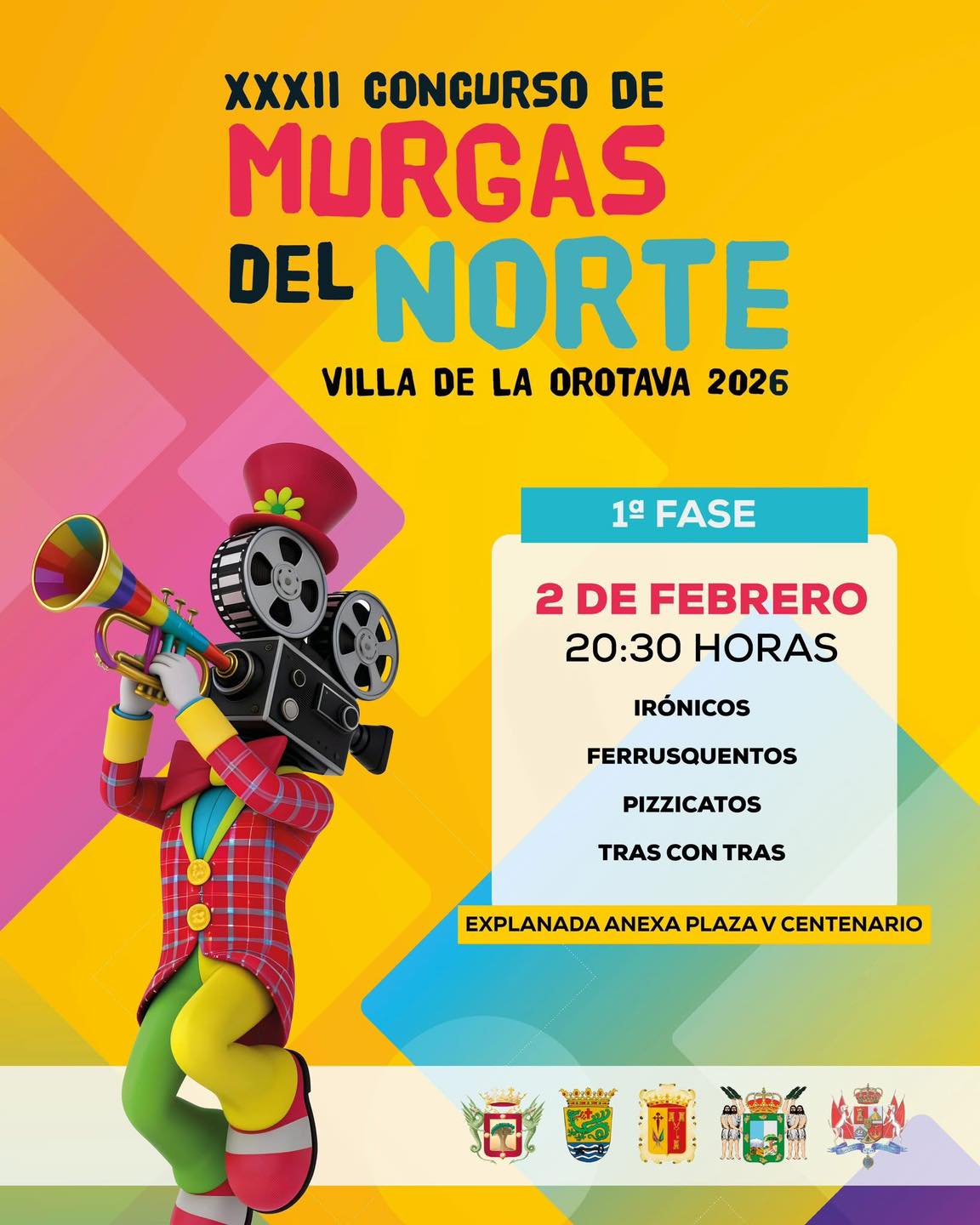 El calendario continuará con el XXXII Concurso de Murgas del Norte – Villa de La Orotava 2026, que se desarrollará en la explanada anexa a la Plaza V Centenario, a partir de las