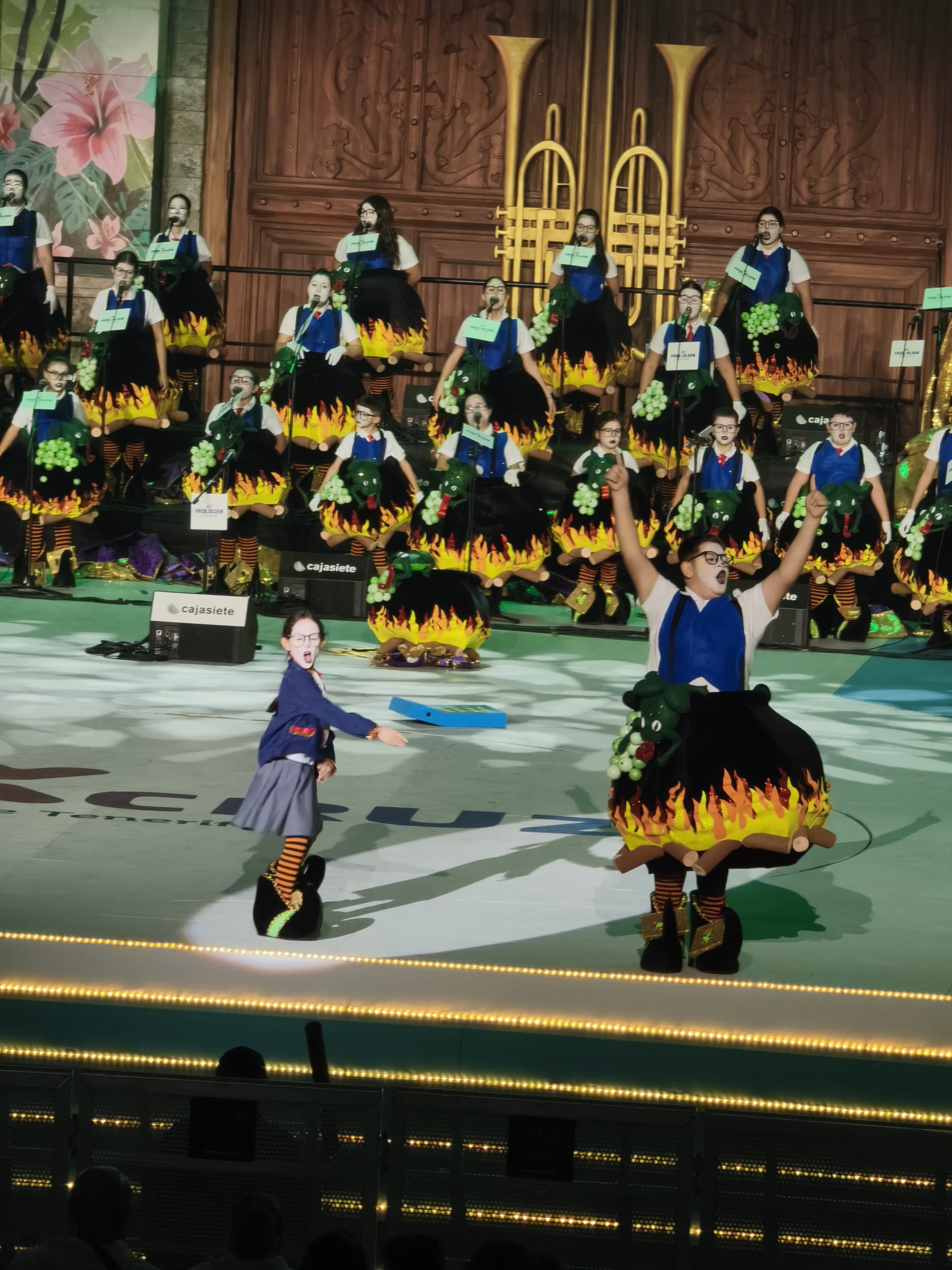 La murga La Sonora cerró la segunda fase con 50 componentes sobre el escenario y la fantasía “El tiempo solo vale si se vive cantando”, diseñada por Yanira y Cristian Santana. Bajo la dirección de Carlos Estébanez y con Óscar Gómez como director musical, interpretaron “Aquí y ahora llegan los Bonos de La Sonora” y “Un tema soñado”, con letras de Nino Bello y Óscar Gómez.