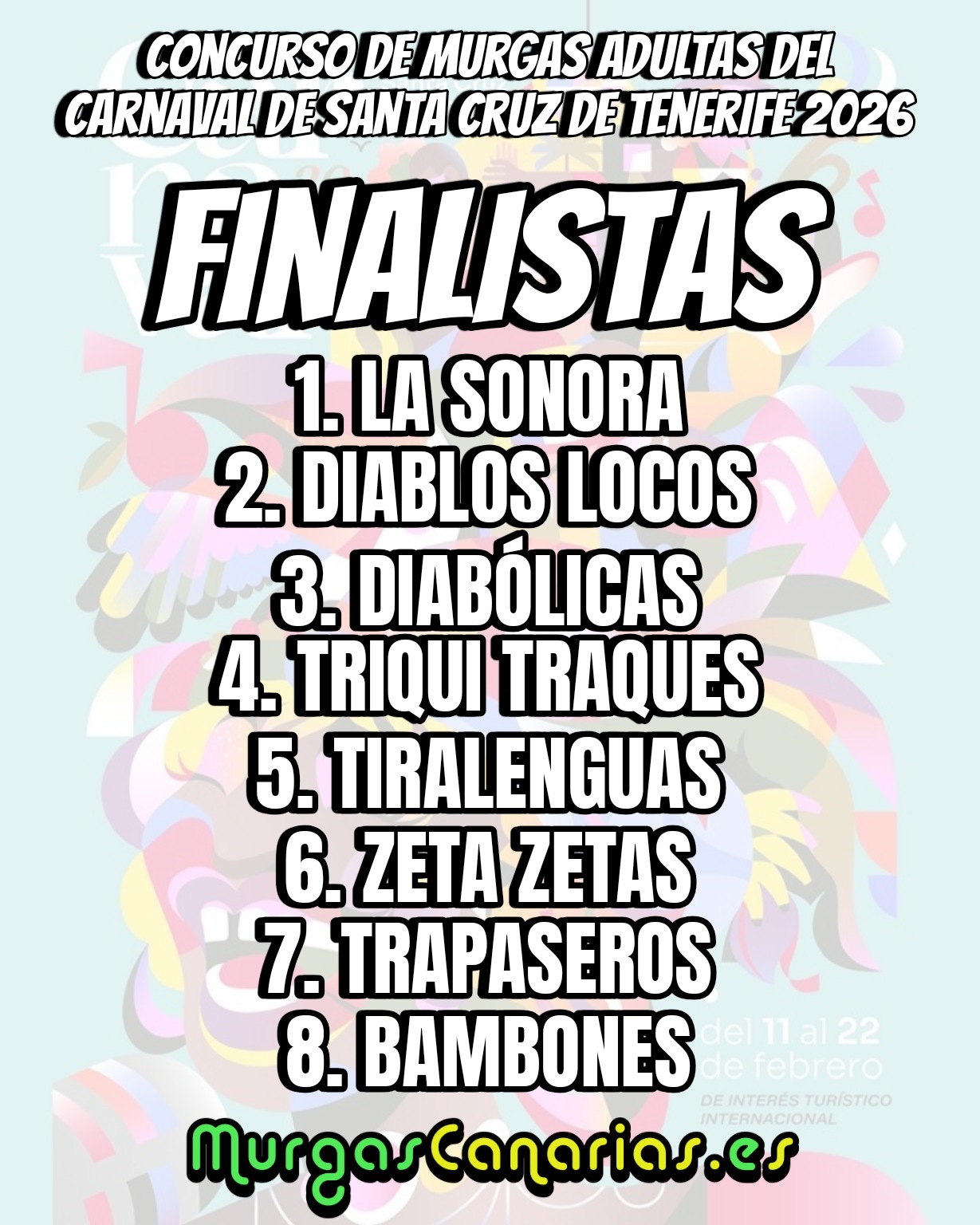 Pingback: EN DIRECTO: Final de Murgas Adultas del Carnaval Santa Cruz de Tenerife 2026 - MurgasCanarias