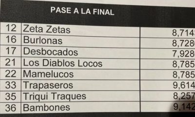Estas son las puntuaciones de fase de las murgas adultas que lograron el pase en la noche...
