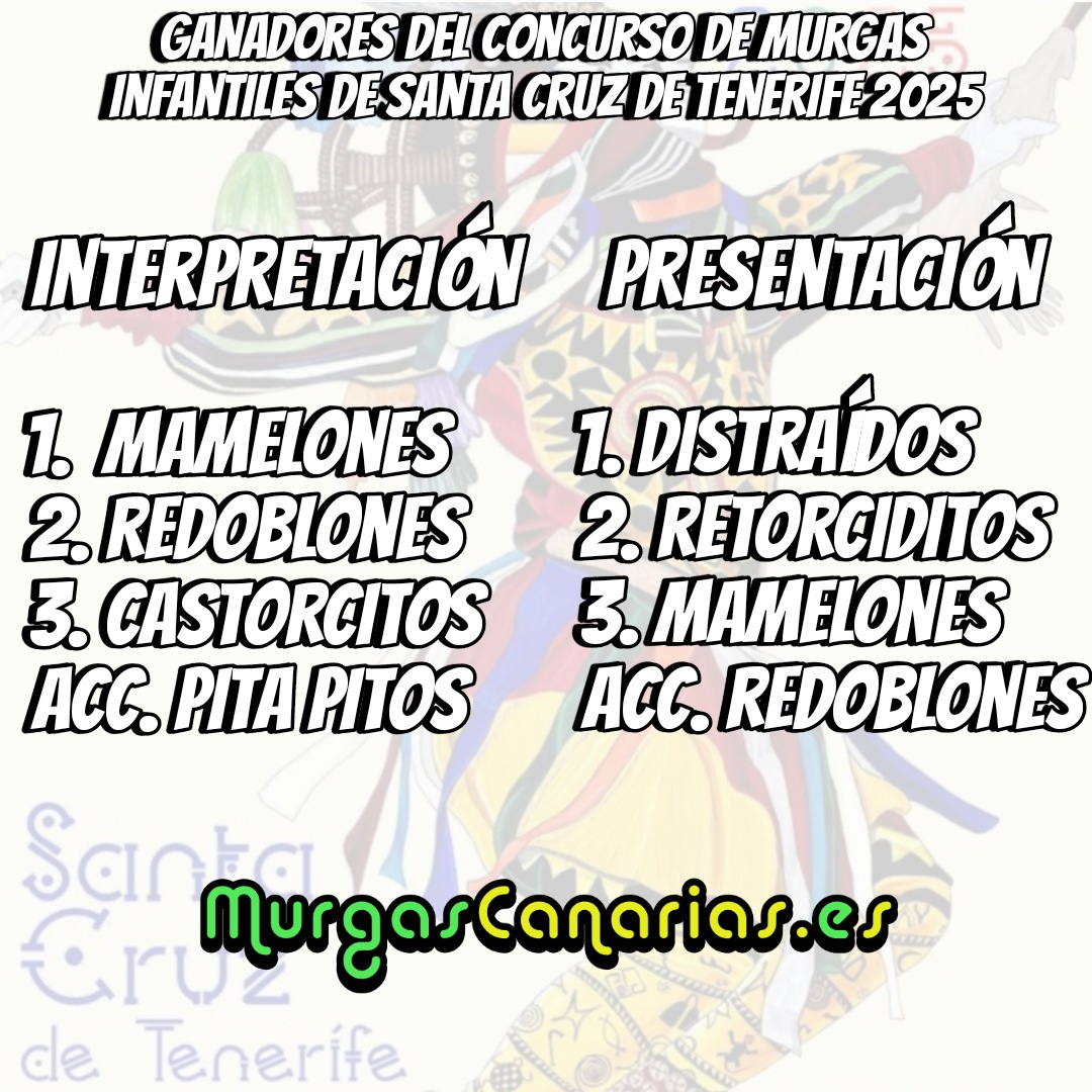 Carnaval Tenerife Ganadores del Concurso de Murgas Infantiles de Santa Cruz de Tenerife 2025 Murgas Canarias 9 febrero, 2025 Haz Click para comentar Deja tu comentario Cancelar la respuestaTu dirección de correo electrónico no será publicada. Los campos obligatorios están marcados con *Comentario * Nombre * Correo electrónico * Web Guarda mi nombre, correo electrónico y web en este navegador para la próxima vez que comente. + 7 = Carnaval Tenerife 9 febrero, 2025 Artículos relacionados