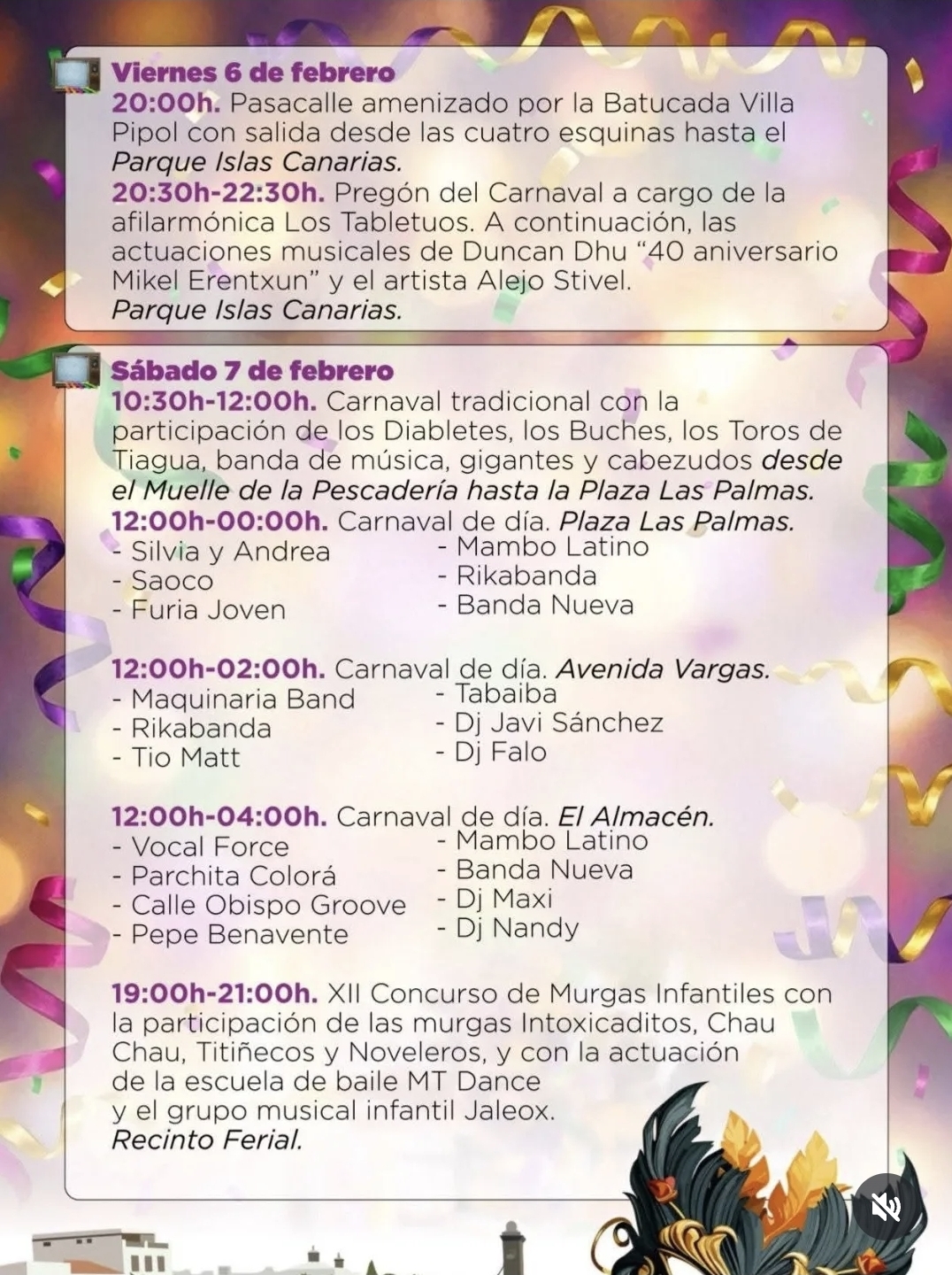 20:00 Pasacalles (desde Las Cuatro Esquinas hasta el Parque Islas Canarias)