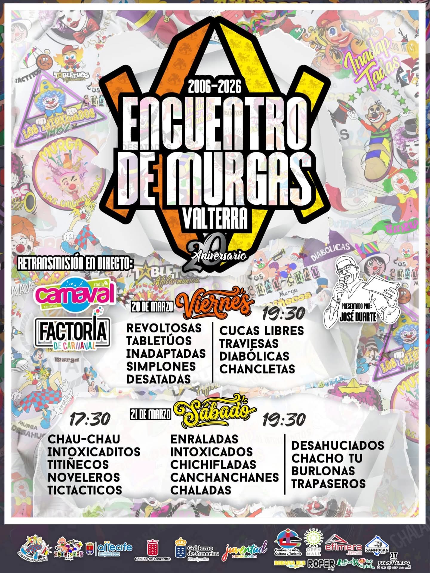 El Encuentro de Murgas de Valterra 2026 ha dado a conocer el cartel oficial de su vigésima edición, una cita que volverá a reunir a agrupaciones murgueras de distintos puntos del Archipiélago en lo que se ha consolidado como uno de los eventos más representativos del calendario carnavalero fuera de los concursos oficiales.